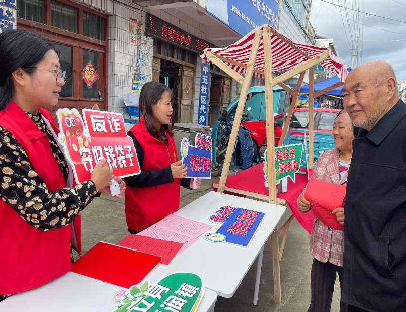 宣传单页上的问题条条戳中村民日常——“网上投资平台登不上、客服失联该咋办?”“婚恋网站认识的人让你一起投资,靠谱吗?”志愿者们结合案例逐个讲解,碰到村民听不懂的专业词,就用大白话翻译:“像‘杀猪盘’,就是骗子先在婚恋网跟你处对象,等你信任了,就哄你去投假项目,最后卷钱跑路,这就是把你当‘猪’养呢!”一番话让村民们恍然大悟。