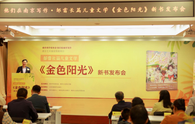 10月19日,著名作家邹雷长篇儿童文学《金色阳光》新书发布会在南京南汽大厦一楼报告厅成功举办。活动由南京市作家协会、南京江北新区文联联合主办,江苏凤凰美术出版社协办,南京创意中心、南京世界文学客厅、南京江北新区作家协会共同承办。