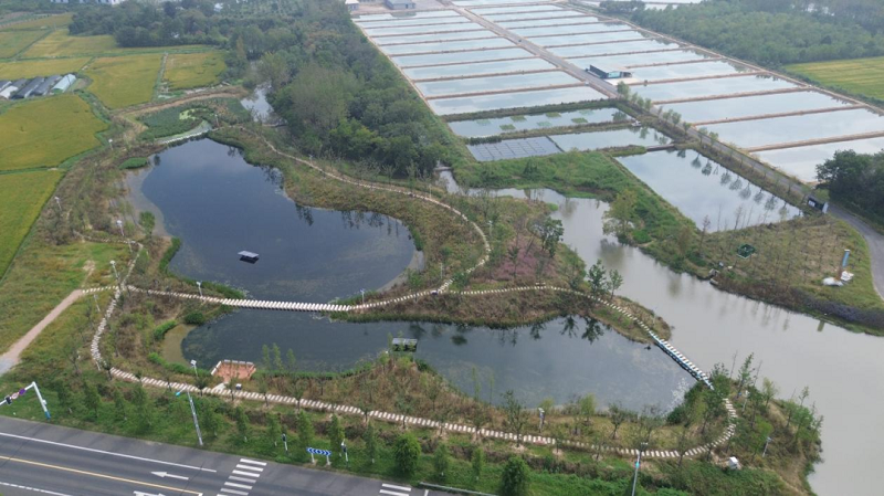社渚镇青虾养殖面积广、产量高,但养殖尾水中的氮、磷等营养物质及有机污染物,曾是社渚水生态的“心腹之患”。过去养殖旺季,尾水排放量激增,传统处理模式难以应对,水体富营养化风险凸显,既影响河道水质,也制约养殖业绿色发展。作为河长制重点攻坚任务之一,尾水治理被纳入全镇河湖保护治理“一盘棋”,镇、村两级河长主动扛起责任,牵头开展实地调研,摸清养殖尾水排放痛点、河道生态短板,牵头制定“一河一策”治理方案,将紧邻生态湿地的原养殖区及荒地纳入水生态修复体系,推动青虾科技小院生态湿地项目落地。