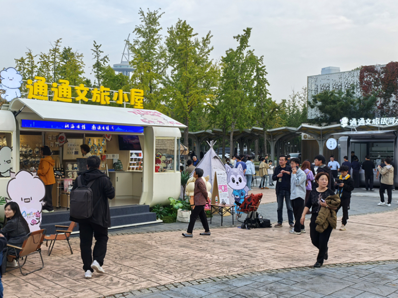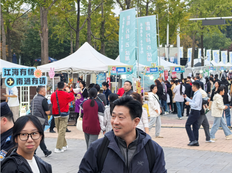 11月1日下午,在南京奥体中心旁的银杏里文化艺术街区,正进行着“通泰携手·与宁有约”“跟着‘苏超’去‘读城’——双城记”活动。当天,数万的游客带着欣喜、探索和好奇的眼光,感受南通和泰州的双城魅力。