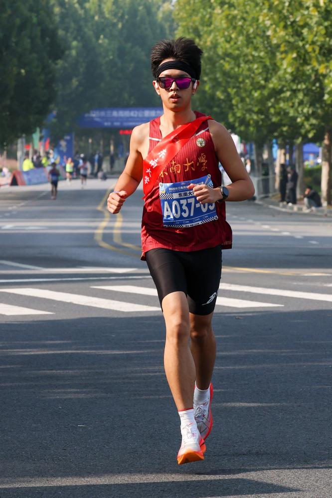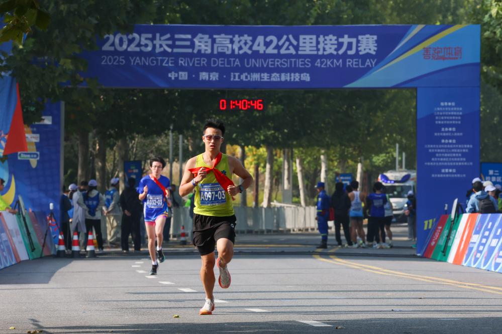 11月2日,2025长三角高校42公里接力赛在南京建邺区江心洲鸣枪起跑,来自长三角地区三省一市的100余所高校、近200支代表队参赛。