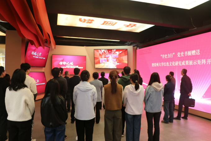 据悉,常州大学红色文化研究展示矩阵位于“常大红馆”尾厅,它由五块电子大屏组成,内容分别是“信仰之魂——铸牢根基的20讲中国共产党人精神谱系系列讲座;精神之窗——辐射社会的沉浸式红色主题展览;育人之桥——跨界联动的馆校协同‘三百讲坛’;铸魂之行——年年不断的‘红色五月’活动;思想之炬——引领创新的红色文化研究高地”。该展示矩阵集中展示了常州大学红色文化研究院(中共党史党建研究院)作为江苏省重点培育智库,多年来致力于中共党史和红色文化资源的发掘、研究和运用,不断丰富思政育人的表现形式,将红色基因融入课程体系,打造“有温度、有深度”的思政金课,推进革命文物理论体系和教学体系建设,红色文化研究领域成果丰硕。