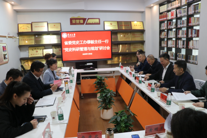 与会领导与常州大学部分师生围绕“党史科研管理与规划”开展交流研讨会现场。