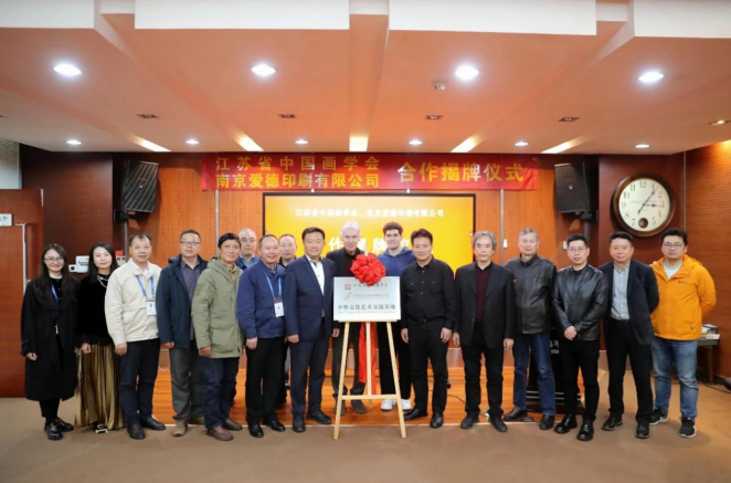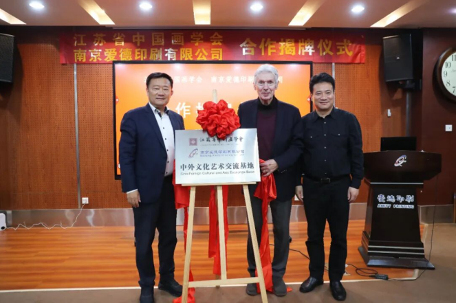 11月3日,江苏中国画学会与南京爱德印刷有限公司签约暨中外文化艺术交流基地合作揭牌仪式在南京爱德印刷公司举行。法兰西艺术院通讯院士让・高立昂、法兰西艺术院通讯院士助理顾博,江苏省中国画学会会长翟优,副会长王平、王野翔、桑建国、韩非,副监事长孙渊远,副秘书长陈岩、顾光明,学会理事杨家林,南京爱德印刷总经理刘磊、南京爱德印刷副总经理刘军民、南京爱德印刷总经理助理吴奎、南京爱德印刷外贸业务部高级经理孙亚丽、南京爱德印刷人事行政中心经理助理姜先动等出席仪式,仪式由南京爱德印刷内贸业务部苏琰主持。