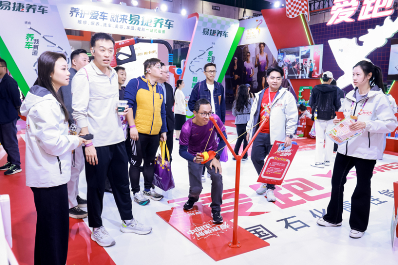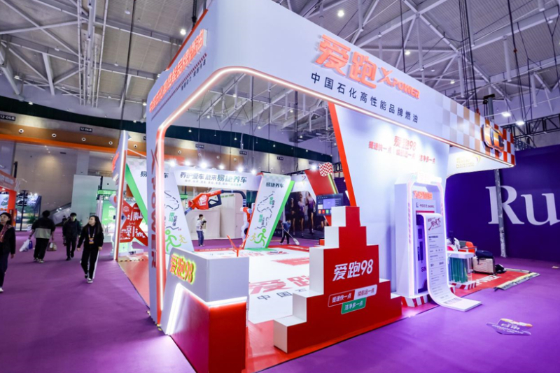 今年,爱跑X-Power”主题展区的设计,以“X”为核心视觉符号,融合南京城市特色与现代科技美感。整体造型以白色为主基调,象征洁净能源的纯粹与力量,辅以石化红色线条贯穿空间,勾勒出速度与激情的视觉节奏。局部点缀绿色灯光,呼应爱跑98号绿色清洁能源的环保属性,展现中国石化对绿色低碳未来的承诺。展区以简约而富有科技感的线条构成空间层次,形成视觉聚焦与流动感,营造出兼具城市人文底蕴与未来科技气息的沉浸式体验氛围,传递“洁净所能、为爱奔跑”的品牌精神。