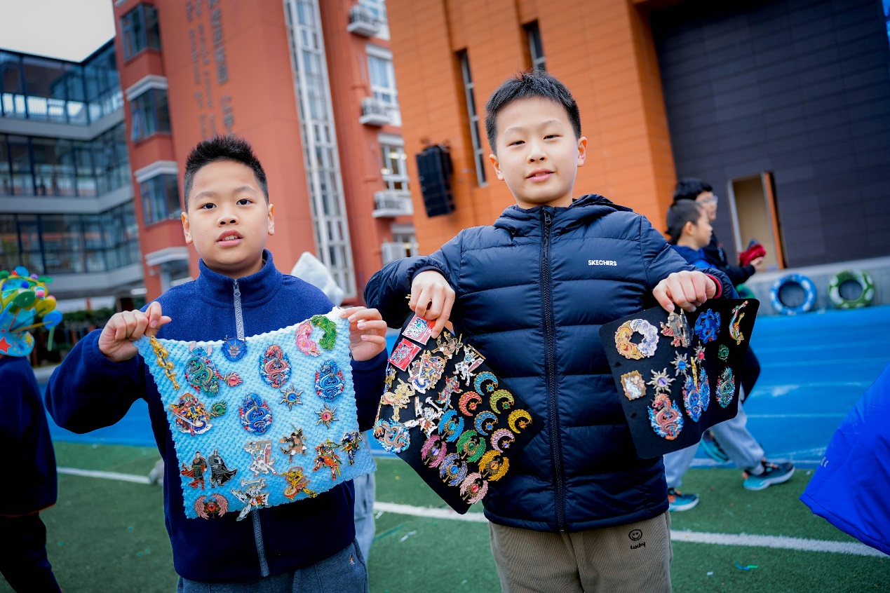 每位学生还领取了一本“通关文牒”,通过参与各项活动集章打卡,兑换限定徽章和手环等纪念品。活动尾声,孩子们互相交换徽章,珍藏彼此的友谊与回忆。