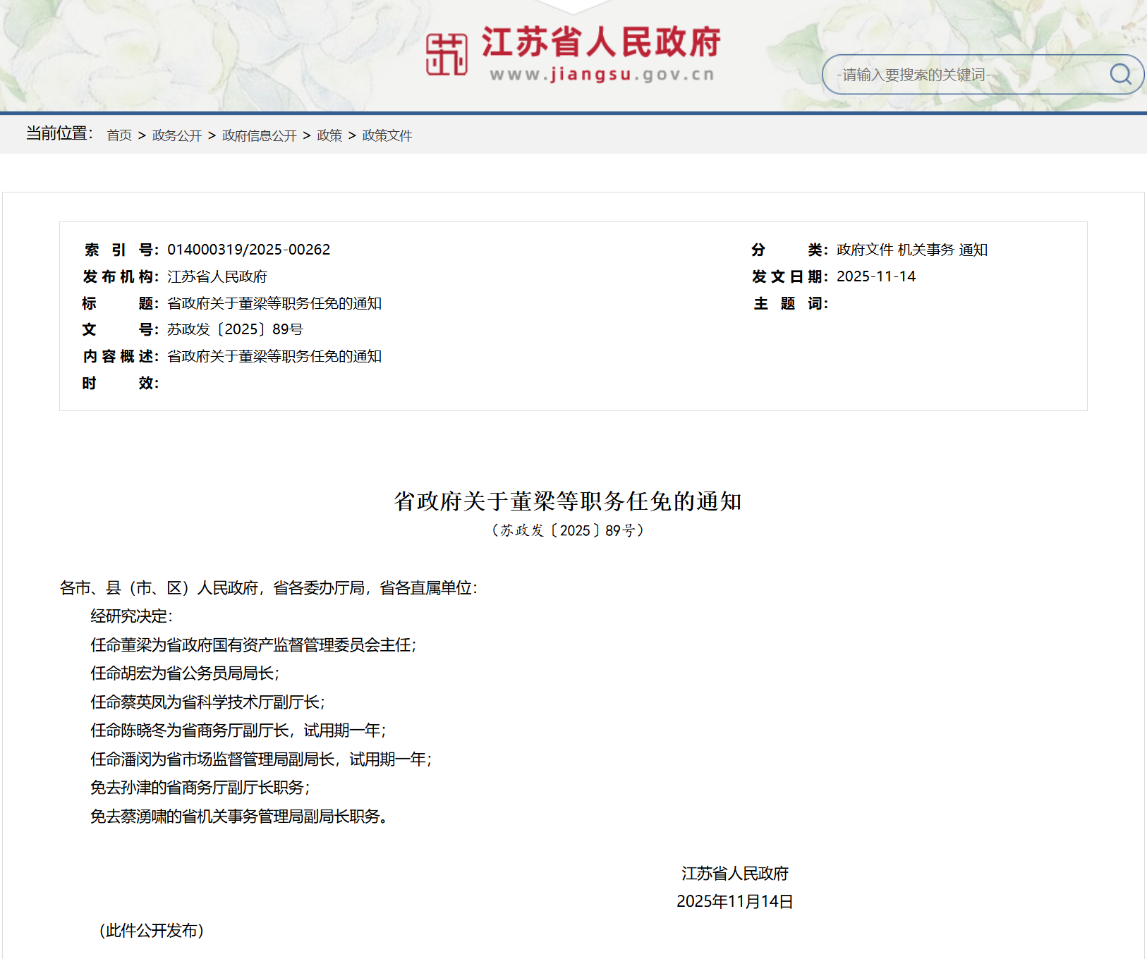 任命陈晓冬为省商务厅副厅长,试用期一年;