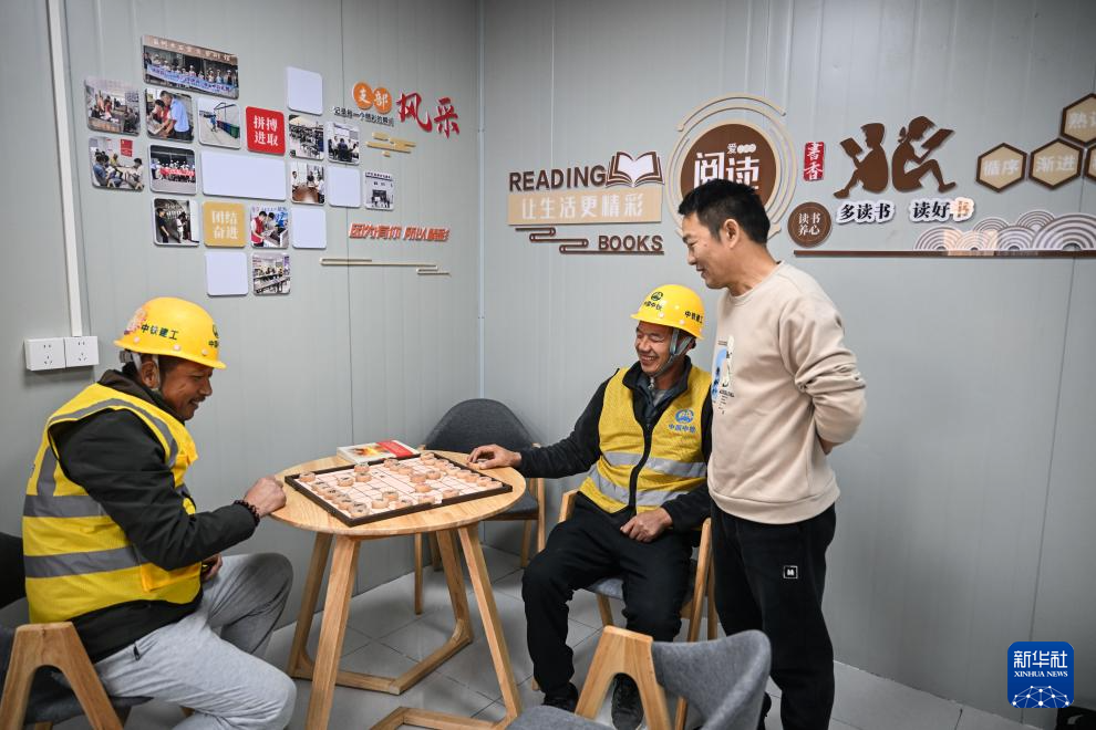 11月25日,工人在苏州北站新时代建筑工人社区工友之家下棋。