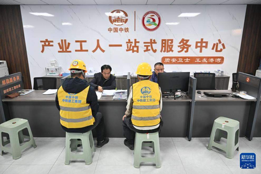 11月25日,工人在苏州北站新时代建筑工人社区产业工人一站式服务中心办理业务。