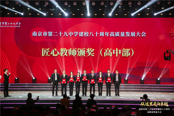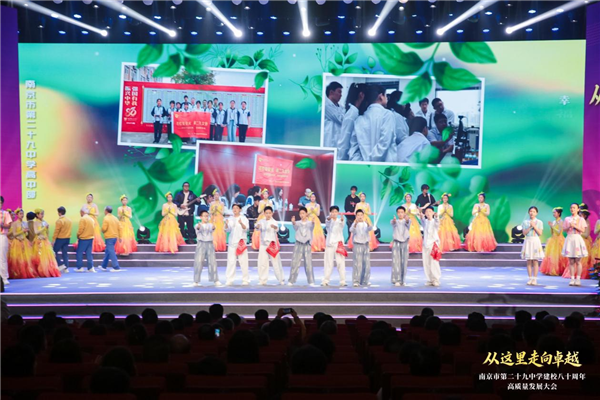 八十年来,南京市第二十九中学始终以“高质量发展”为内核,既在“文脉传承”中锚定育人根本——以师道匠心夯实课堂质量、以全面培养拓宽成长维度;也在“创新破局”中对接时代需求——用科技实践激活创新思维、以校地联动拓展育人平台,更以新校区启用为契机,将“高质量”写进办学的每一处细节。当《强国有我》的和声落下,这次南京市第二十九中学建校八十周年高质量发展大会圆满落幕,这场盛会是二十九中向教育本质的回归——以高质量的育人,托举每个少年的成长;更是向时代的承诺——以八十年积淀的底气,在“高质量发展”的赛道上,继续写就“从这里走向卓越”的教育新篇。