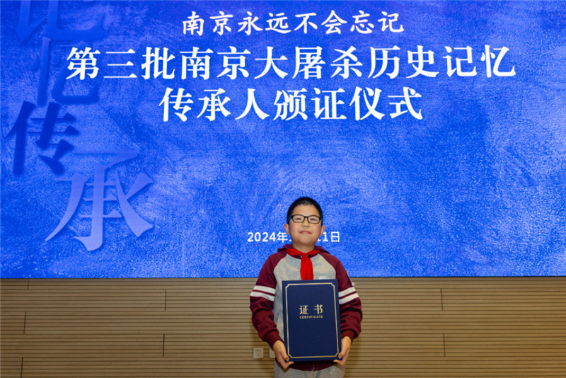 2022年以来,侵华日军南京大屠杀遇难同胞纪念馆先后认证了四批共38位“历史记忆传承人”,任颖与儿子于恬祥均在其中。对于这一特殊身份,任颖的理解深刻而坚定:“传承,首先是血脉的相承——外婆的回忆史就是我们的家族史;其次,家族记忆是国家记忆,更是世界记忆的一部分,当有人遗忘或试图歪曲历史时,我们必须站出来捍卫真相;第三,我们要守护来之不易的和平,让外婆这样的幸存者能够安享晚年。”