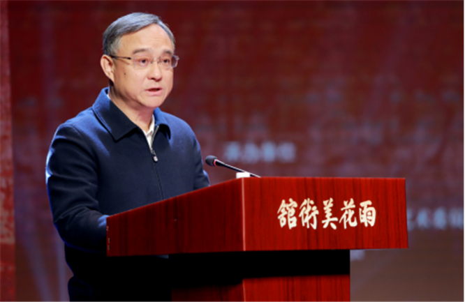 中国美协分党组书记、驻会副主席屈健讲话。他表示,本次展览是“青年”与“写意”双核心,集中展示了一批青年艺术家的中国画创作成果。展览旨在弘扬中国画写意精神,鼓励青年一代在深入传统笔墨的同时,勇于进行当代创新表达,展现出鲜明的时代气息与文化自觉。希望以此激发青年艺术家创作活力,推动中国美术事业的传承与发展。