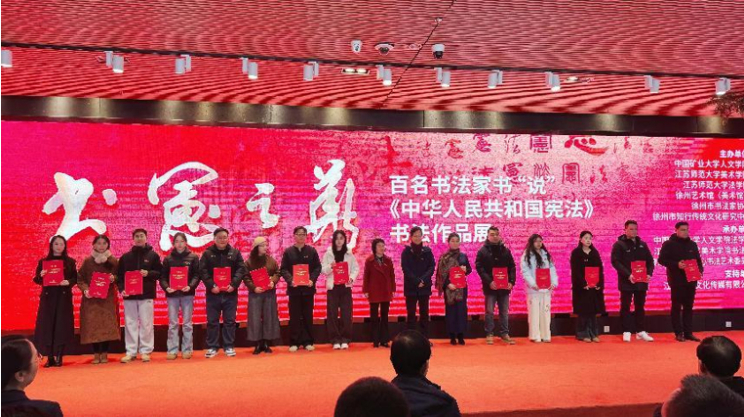 2025年12月4日上午,“书宪之华——百名书法家书‘说’《中华人民共和国宪法》书法作品展”在徐州艺术馆(美术馆)正式开幕。展览由中国矿业大学人文学院、江苏师范大学美术学院、江苏师范大学法学院、徐州艺术馆、徐州市书法家协会、徐州市知行传统文化研究中心联合主办。