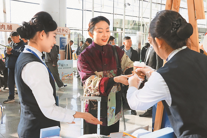 另一边,上铁集团设置的展台前围满旅客。冬瓜雕刻灵动生姿,“迎客松”冷拼诚意迎客,“华东印记”现磨咖啡香气萦绕,长三角火车故事冰箱贴、银制车票等文创产品精巧别致。“集团以‘高铁+文旅’融合为主线,推动车站从传统交通枢纽向文化体验空间转型,打造‘可逛、可品、可回味’的文化驿站,让旅客在旅途中沉浸式感受地域魅力,也为地方品牌通过高铁网络提供更广阔的展示平台。”上铁集团下属新上铁集团公司南京分公司副总经理沙晓峰介绍,将继续强化与地方的协同,围绕旅客需求与文化特色,引入更多优质商业资源,打造更具辨识度和吸引力的高铁站内消费场景。