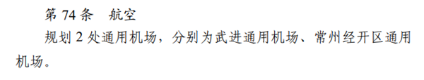 近日,常州市自然资源和规划局武进分局发布了武进区国土空间总体规划(2021-2035 年)文本图集,其中综合交通规划中明确规划2处通用机场,分别为武进通用机场和常州经开区通用机场。