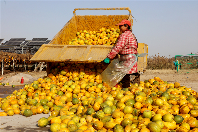 近年来,该镇通过村企合作,因地制宜在光伏架下发展瓜蒌种植产业,有效利用闲置空间,为村民增收开辟了新途径。(吴晨光 王子维)