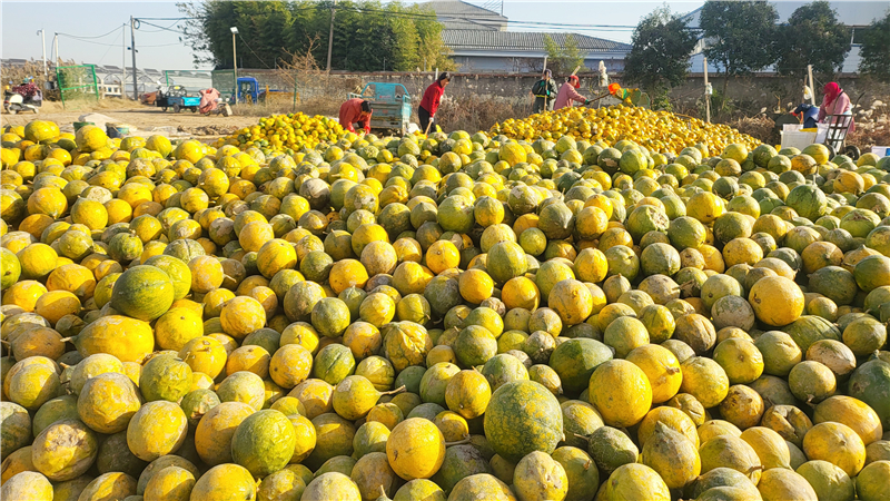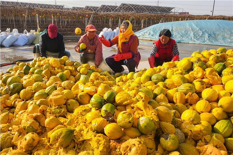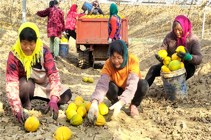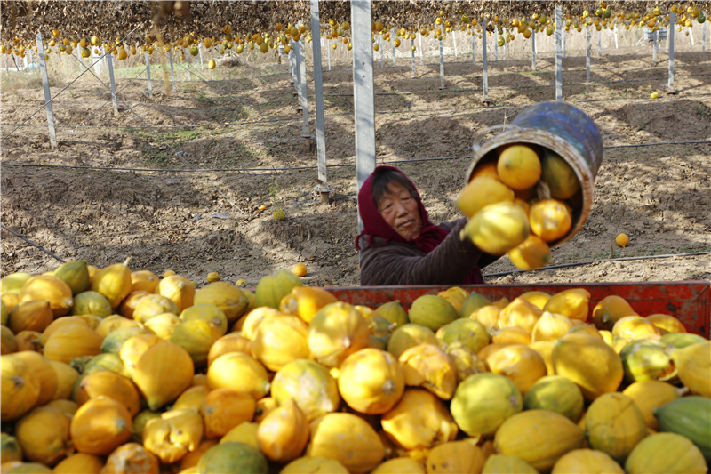 12月9日,江苏省连云港市灌云县杨集镇利华村,村民忙着收获成熟的瓜蒌,田间地头一片丰收景象。