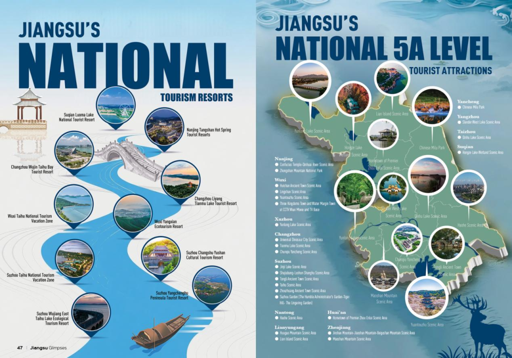 位于江苏的国家级旅游度假区、国家5A级旅游景区地图插图