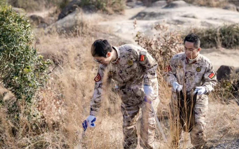 周末本该是休憩放松的时光,苏州吴中区木渎镇民兵志愿者们却主动放弃休息,奔赴灵岩山开展陈年垃圾清理志愿服务,赢得好评。