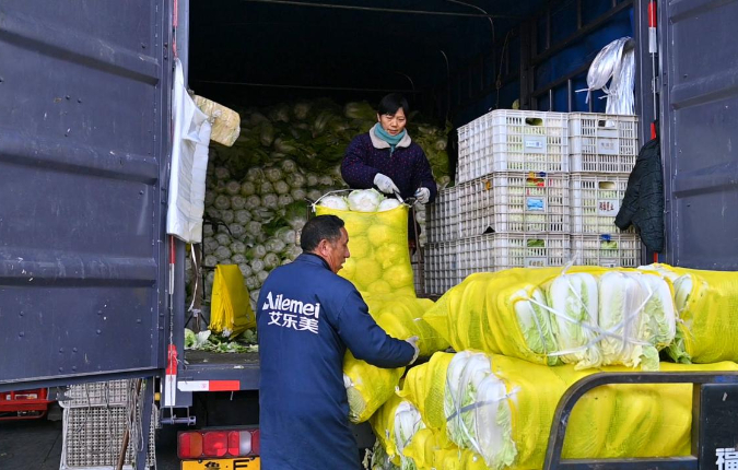 寒风起,菜篮丰。清晨,天边刚泛起鱼肚白,淮安宏进农副产品批发市场已是车水马龙。各式车辆排队称重入场,商户们手脚麻利地卸运、分拣来自全国各地的蔬菜,采购商贩往来穿梭,吆喝声和讨价还价声此起彼伏,每一桩生意都盛满烟火气,勾勒出冬日里最鲜活的民生图景。