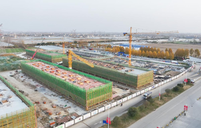 在市场东侧,占地200余亩、总库容10万吨的冷链物流中心项目建设正酣,头戴安全帽的施工人员往来穿梭,多台塔吊高效作业,三座冷库主体建筑已初具雏形。