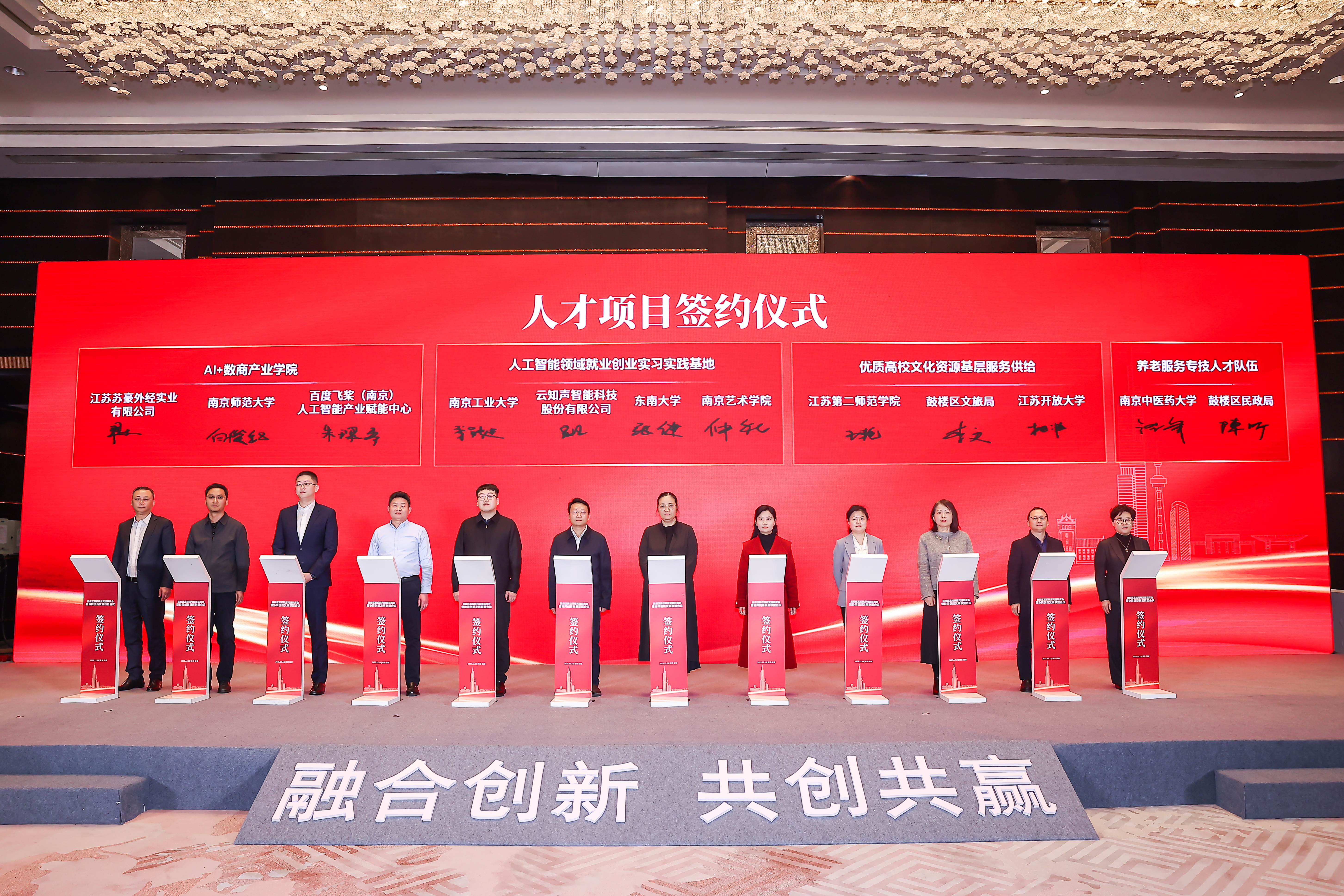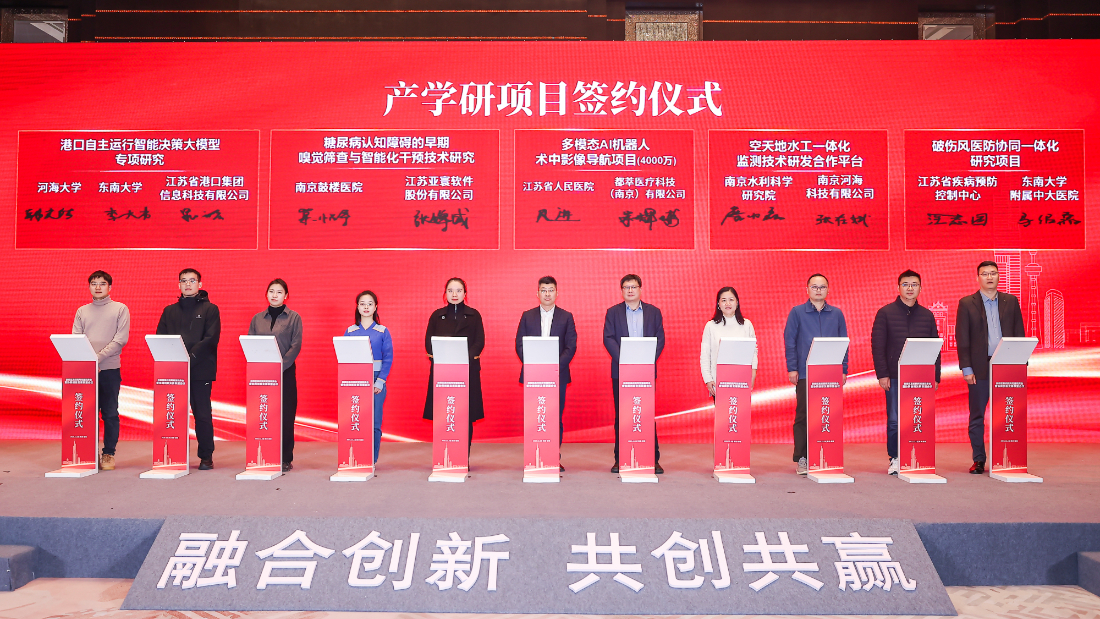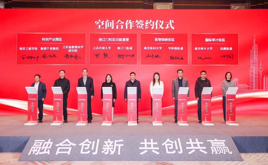 鼓楼区依托南京大学核心资源,聚焦人工智能、生物医药、绿色低碳、脑机接口四大硬核赛道,打造校地协同创新标杆平台 — 环南大知识经济圈;以 “双高协同” 为抓手,设立校企地联合创新社区,推动高校科研、高新区产业、企业市场优势从 “物理聚合” 转为 “化学反应”,加速创新成果产业化;同时,立足首批全国科学教育实验区底蕴,联合江苏省科协共建江苏省青少年科创中心鼓楼基地,系统构建区域科学教育体系,释放科教融合效能。活动现场,环南大知识经济圈、“双高协同”校企地联合创新社区、江苏省青少年科创中心鼓楼基地依次揭牌,标志着鼓楼区校企地合作与创新载体建设迈入提质增效新阶段。17个项目从平台、空间、项目、人才等维度开展集中签约,全面展示一年来党建引领产业科技融合创新的成果。校企地三方携手构建 “高校即实验室、企业即创新场、城市即孵化器” 协同生态,为鼓楼高质量发展注入强劲动能。