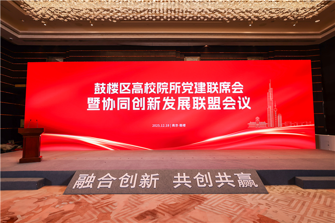 12月18日,2025年度鼓楼区高校院所党建联席会暨协同创新发展联盟会议顺利举行。本次会议以“融合创新 共创共赢”为核心主题,汇聚多方力量共商校地融合新路径。市委常委、组织部部长高颜出席会议,省教育厅、省科技厅、省科协、市科技局、市人社局、市卫健委等省、市相关部门领导,南京大学、东南大学等15所驻区高校负责人,南京水利科学研究院等8家科研院所负责人,鼓楼区四套班子领导,以及驻区高校相关部门、企业代表共150余名负责人齐聚一堂,为鼓楼区校地协同发展擘画新蓝图。