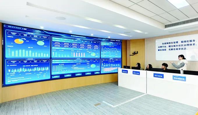 这个集居民服务、内部管理、指挥调度于一体的智慧治理中枢,就像街道的“数字大脑”,归集了街情概况、居民信息等各类政务数据,通过可视化大屏实现“一图总览”。街道指挥调度中心每天监测分析热线工单等数据,及时发现苗头性问题并发布风险预警;通过直联区级屯兵街面、公安雪亮工程等系统,接入重点区域视频监控设备,工作人员在指挥中心就能远程巡查工地、街巷的安全隐患,实现“一屏观全域、一网管全局”。