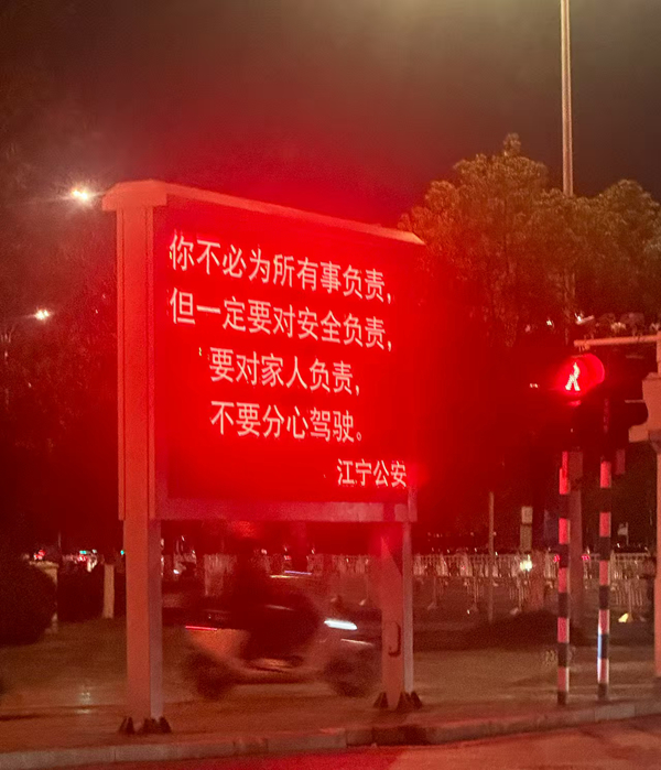 近日,南京市江宁区的红绿灯标语又“上新”,一连串“叮咛”式嘱托,仿佛家人在耳边轻语,用暖心提醒守护居民的出行安全。