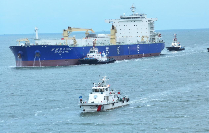 为确保该轮靠泊作业安全、高效,连云港海事局提前联合气象部门发布专属天气海况预报,组织专家召开安全评估会,制定专项保障方案,协调码头和拖轮公司优化靠离泊计划,依托智慧海事平台、AIS、CCTV及无人机巡航、海巡艇警戒等手段,对船舶动态与作业水域实行立体监控,并提前清理航道保持通航环境畅通。同时,严格开展现场检查,核查船舶证书与船员配备情况,重点检查消防、救生及防污染设备技术状况,确保关键设备运行良好。