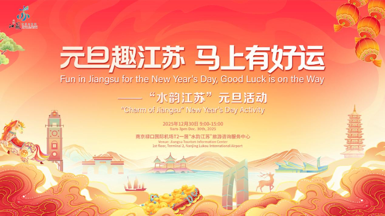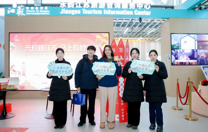 12月30日,“元旦趣江苏,马上有好运”主题活动在南京禄口国际机场T2一层的“水韵江苏”旅游咨询服务中心正式启幕,通过丰富多元的互动体验与特色文旅资源推介,为往来旅客送上诚挚的节日祝福,全方位展现“水韵江苏”的独特文旅魅力。
