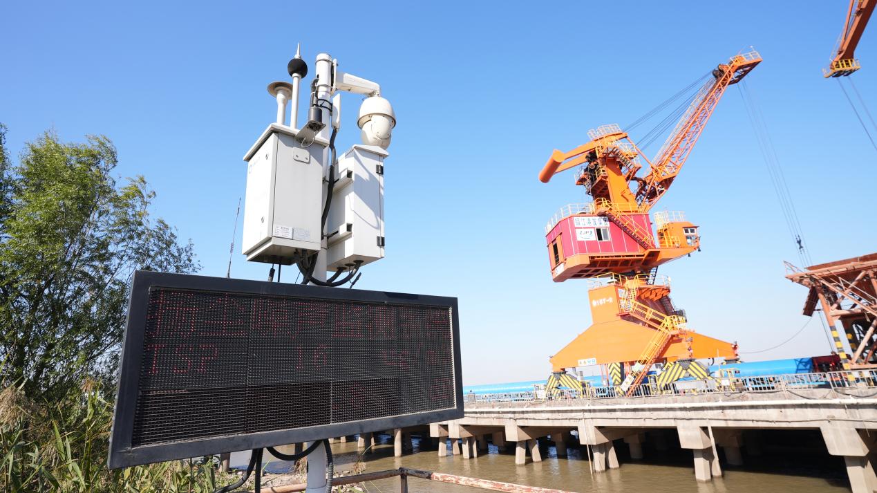 龙门港区码头安装的扬尘噪声监测系统(施汉 摄)