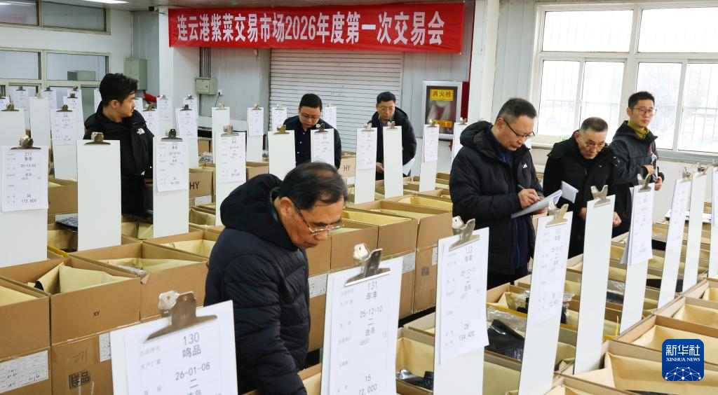 1月14日,江苏省连云港市举办2026年度第一场紫菜交易会,126家紫菜加工企业提供约3.28亿张干紫菜入场销售,吸引众多中外客商到场选购交易。近年来,当地政府引导渔民科学养殖紫菜,形成包括育苗、养殖、生产、加工和出口等环节的产业链。