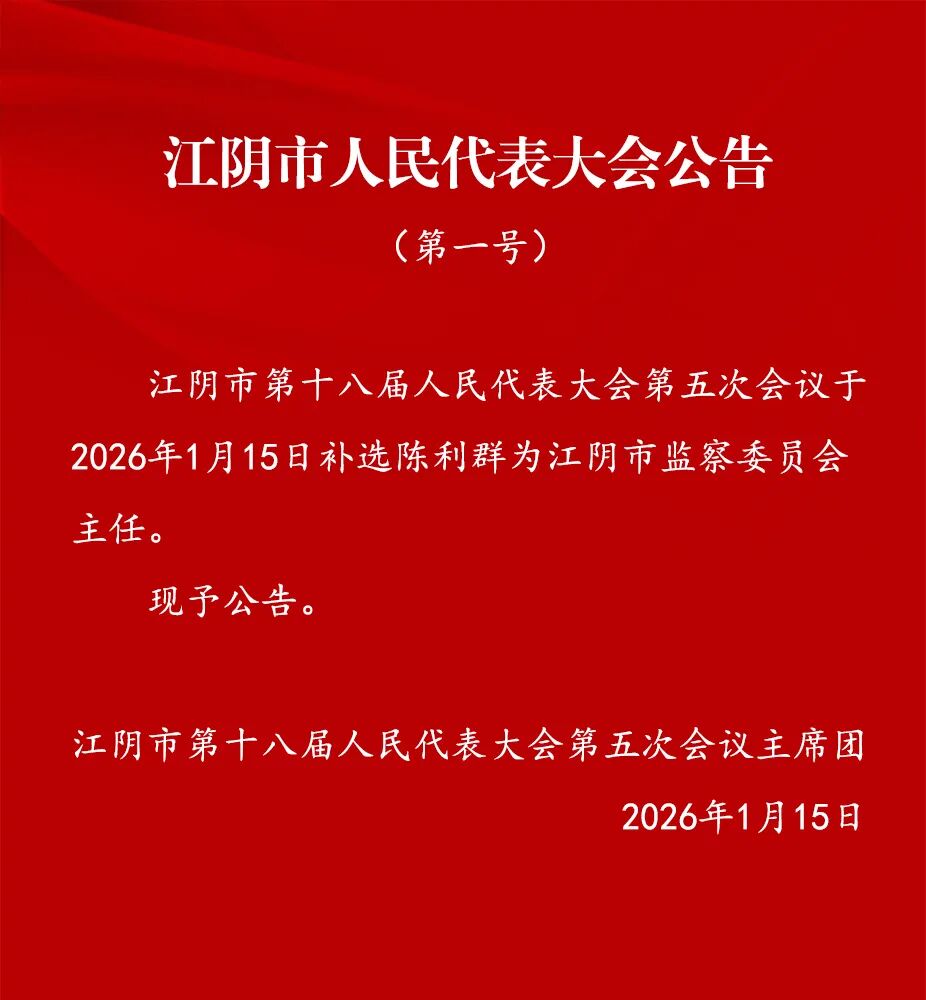 陈利群任江阴市监委主任
