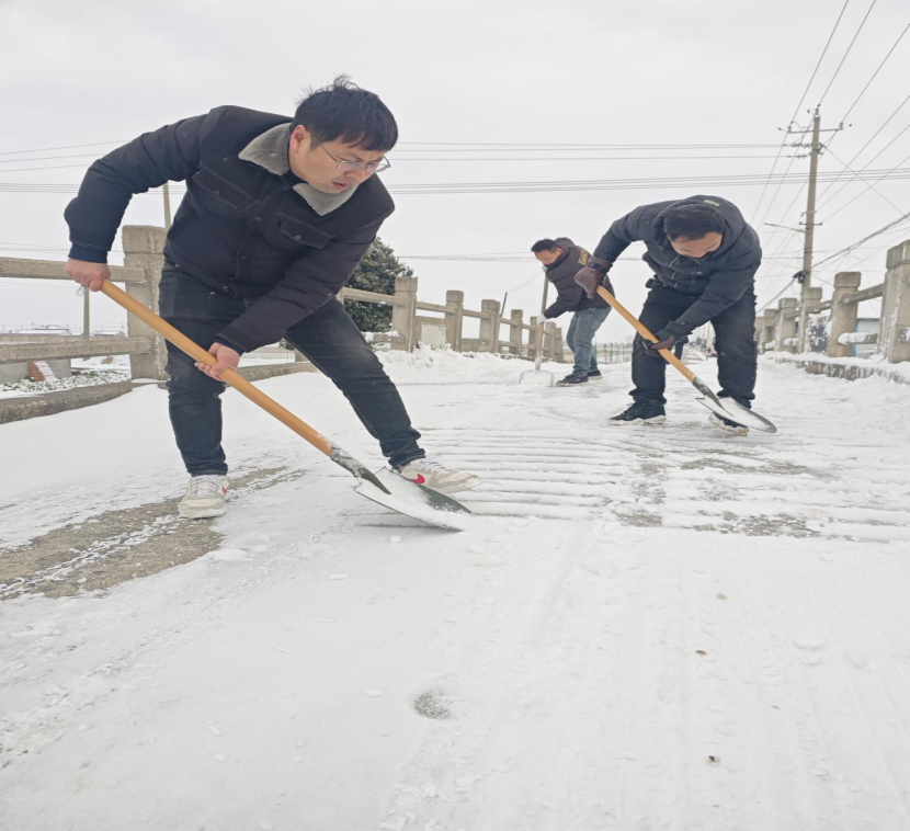 行动中,镇村干部、党员、环卫工人及志愿者,使用扫帚、铁锹等工具,对主要通行道路、桥梁、陡坡、急弯等重点路段进行集中清理。同时针对易结冰点位,采取人工撒盐等措施加速融雪,确保交通安全,防范因积雪结冰引发的意外事故。