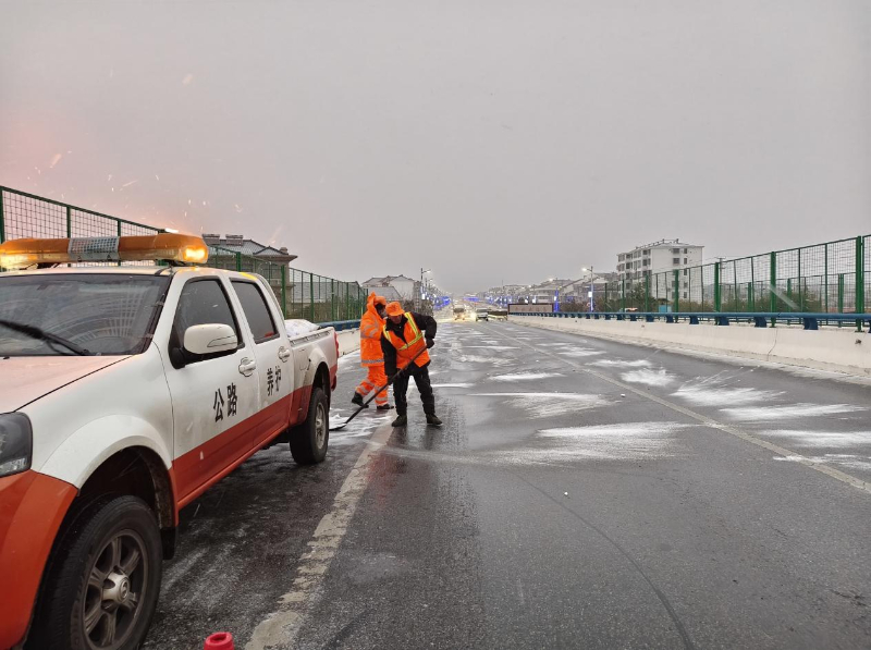 物资齐备,科学除冰。为高效应对雪情,该县交通各相关部门提前完成应急力量与物资集结。全县共组建5支124人的应急队伍,布设4处物资储备点,储备融雪剂100吨、工业盐31吨、防滑料220吨,并配备推雪板、洒布机、滚刷、装载机等设备随时待命。除雪作业采取“机械为主、人工为辅”模式,科学调度力量。养护人员按照“先桥后路、先弯后直”原则,重点对全县国省干线36处桥梁、弯道、陡坡等易结冰路段开展昼夜不间断巡查与预防性撒布作业。