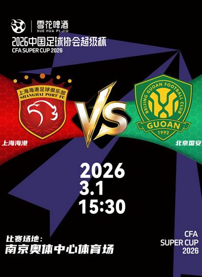 “京沪大战”,再燃战火!3月1日15:30,中超冠军上海海港VS足协杯冠军北京国安,2026中国足球协会超级杯巅峰对决来袭!