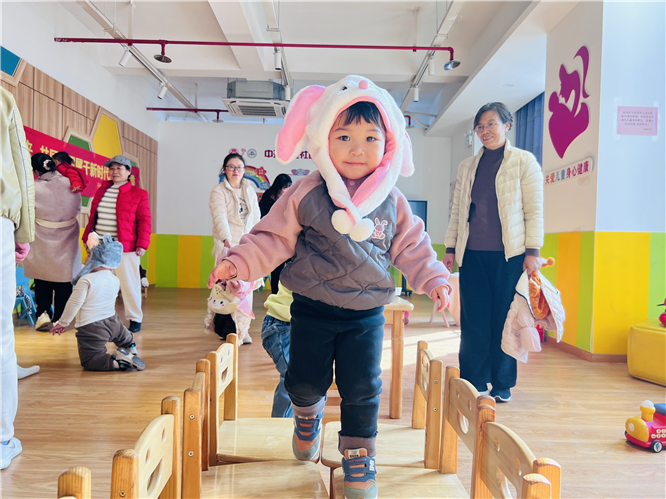 核心游戏环节“萌趣动物游戏大闯关”将活动推向高潮。孩子们佩戴上形态各异的动物头套,在家长的陪伴下开启闯关之旅,在趣味运动中锻炼了肢体协调性与勇气。