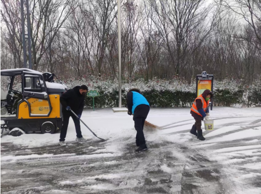 聚力攻坚,打造民生“畅通路”。通过“政府主导、社会协同、公众参与”的共治模式,提升铲雪除冰效率和温度。出动铲车、撒盐车等机械,撒布融雪剂约5吨,对主干道、桥梁、陡坡路段进行重点清理。沿街商户积极落实“门前三包”责任,自发清扫门前积雪。党员干部、基干民兵、环卫工人、志愿者等组成“突击队”,手持铁锹、扫帚对主干道、背街小巷、村组道路进行人工清扫。便民服务中心开辟“暖心通道”,供工作人员、行人临时休息,并提供热水、暖宝宝等补给物资。村民王启富感慨:“看到铲雪‘突击队’在雪地里忙碌,心里特别踏实!”