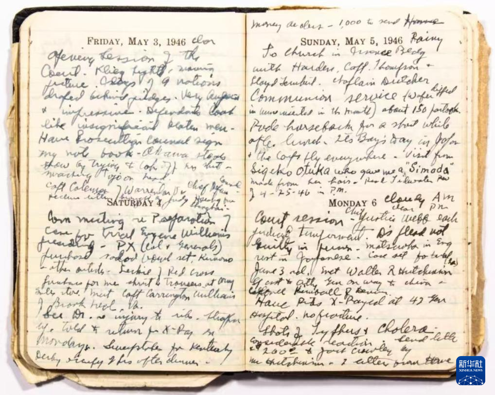 记者从侵华日军南京大屠杀遇难同胞纪念馆获悉,东京审判时期美国副检察官萨顿的日记近期被发现,由收藏家邹德怀拍得并送抵国内。经初步鉴定,日记为原件,系首次披露。