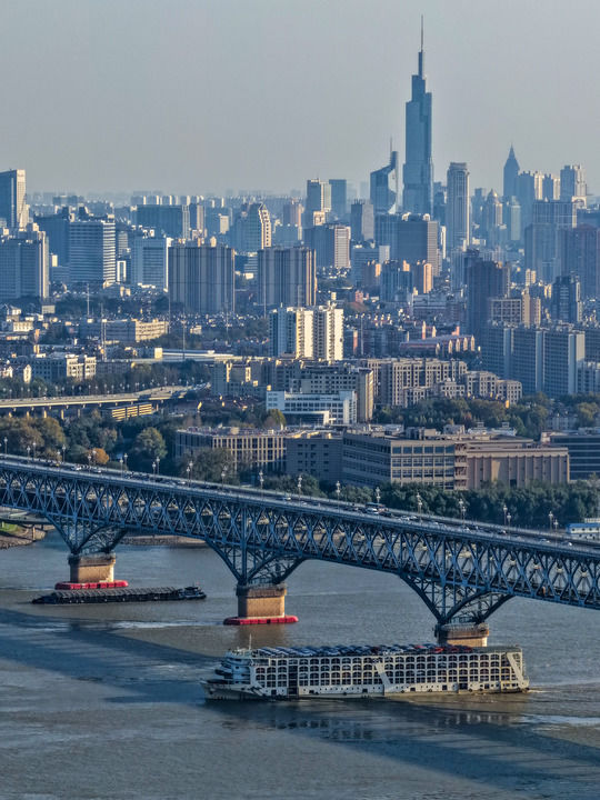 船只从南京长江大桥下驶过(2025年11月18日摄)。新华社记者 李博 摄