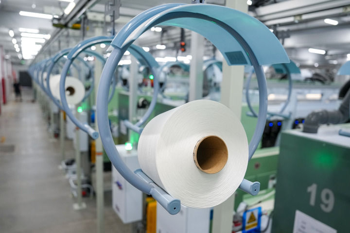 这是2025年10月23日拍摄的位于江苏省南通市崇川区的江苏大生集团碳中和智慧纺纱工厂生产车间。新华社记者 李博 摄