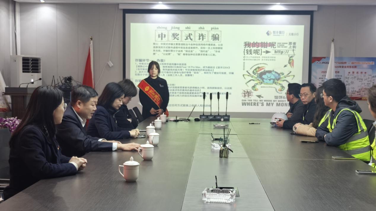 活动当天,由宜兴支行党(团)员组成的志愿者服务队,深入中建三局一公司项目工地一线,将金融知识的“春风”吹进了繁忙的建设现场。服务队针对建筑工人群体常见的金融需求和风险痛点,围绕金融消费者权益保护、防范电信网络诈骗、银行卡安全使用、个人信息保护、防范非法集资等核心内容,通过通俗易懂的语言和鲜活生动的真实案例,深入浅出地剖析了高息诱惑、虚假网贷、刷单返利等典型诈骗套路,有效提升了工友们对各类金融风险的识别能力和防范意识,为他们送上了一份“接地气”的金融安全指南。