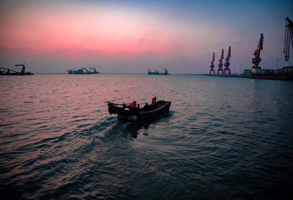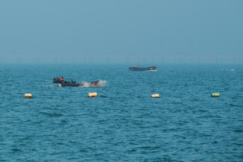 一尾鳗鱼苗重约0.15克,相当于3滴水的重量。因其完全依赖野生捕捞,又被渔民们称为“水中软黄金”。近日,江苏省如东县长沙镇的渔民赶往30海里外的作业船上捕捞鳗鱼苗。鳗鱼苗作业平台通常由一艘母船、一艘装载网具船、一艘作业船组成。每年元旦前后张网迎鳗鱼苗,到4月底结束捕捞。如东位于沿海与长江“T形”交汇点,凭借独特的咸淡水环境,形成了覆盖鳗鱼苗捕捞、生态养殖到精深加工的完整产业链。(王军 摄)