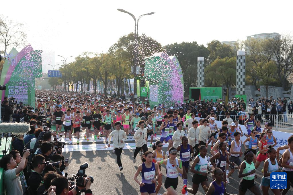 3月29日,2026扬州半程马拉松赛在扬州市民中心广场鸣枪开跑。
