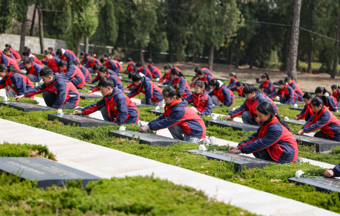 3月26日,清明节前夕,连云港市赣榆区城头中心小学近500名师生来到抗日山烈士陵园,祭奠长眠于此的1800余名烈士。自1975年起,该校每年清明节前都会组织这样的缅怀行动,至今已坚持51年。