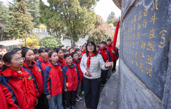 “带学生们来抗日山烈士陵园,不只是一次简单的祭扫,更是一堂生动的红色思政课。”连云港市赣榆区城头中心小学大队辅导员周杨表示,作为基层教师,不仅要传授知识,更要把红色基因、爱国精神根植在孩子心中,“通过实地参观、亲身感悟,让孩子们从历史中汲取力量,懂得珍惜当下,明白少年一代的责任与担当,这比课堂上的说教更有意义。”