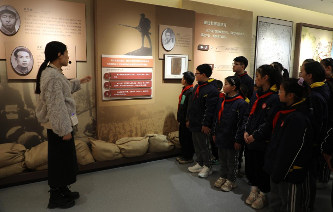 怀着对革命先烈的崇敬与追思,队员们身着整洁校服,佩戴鲜艳红领巾,迈着整齐的步伐来到十八勇士纪念馆。在讲解员的带领下,队员们认真聆听青口战役中十八勇士浴血奋战、弹尽援绝仍坚守阵地的英雄事迹,驻足凝视馆内的历史图片、珍贵文物,深刻体会到革命先烈为民族解放抛头颅、洒热血的无畏精神。