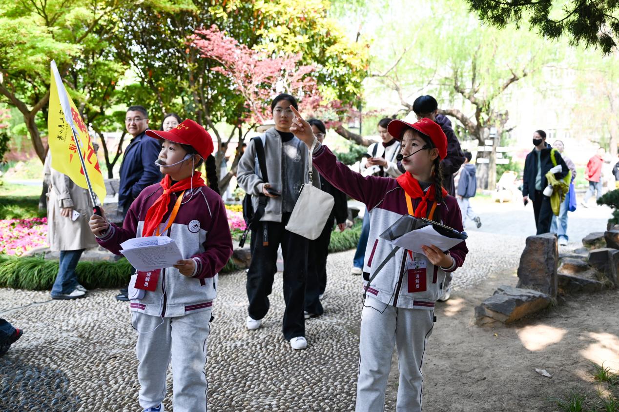 4月4日上午,来自淮安市人民小学“人民·少年说”红领巾讲解团的13名少先队员走进清晏园,化身小小讲解员,用清脆的童声为往来游客讲述园林故事、传递淮安文脉,成为这座“江淮第一园”里最动人的风景。