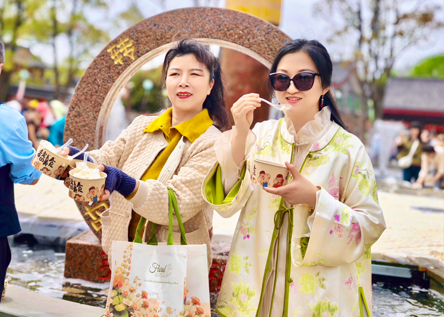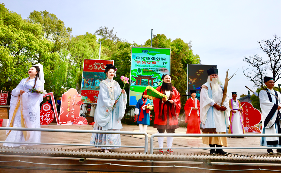 宜兴张公洞风景区相关负责人表示,举办首届张公豆腐节的意义在于传承和弘扬宜兴的传统美食文化,带动宜兴文旅经济的发展。活动期间,除了巨型豆腐的展示和品尝,还有丰富多彩的网红吕婆婆斗舞、“八仙”民俗表演、传统手工艺展示以及地方特色商品展销。游客们不仅能品尝到地道的张公豆腐,还能深入了解宜兴的历史文化,购买到具有地方特色的纪念品。此外,活动还特别邀请了知名美食博主和旅游达人进行现场直播,扩大宜兴文旅的影响力。(闵学平 樊雅娜 杨云涛)